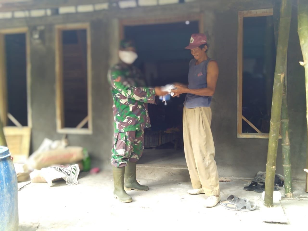 Darmawi, salah seorang warga Desa Tamansari, mengucapkan terima kasih kepada Satgas TMMD, setelah mendapat masker serta sosialisasi dengan adanya Satgas TMMD Kodim 0718/Pati, menyampaikan secara langsung.