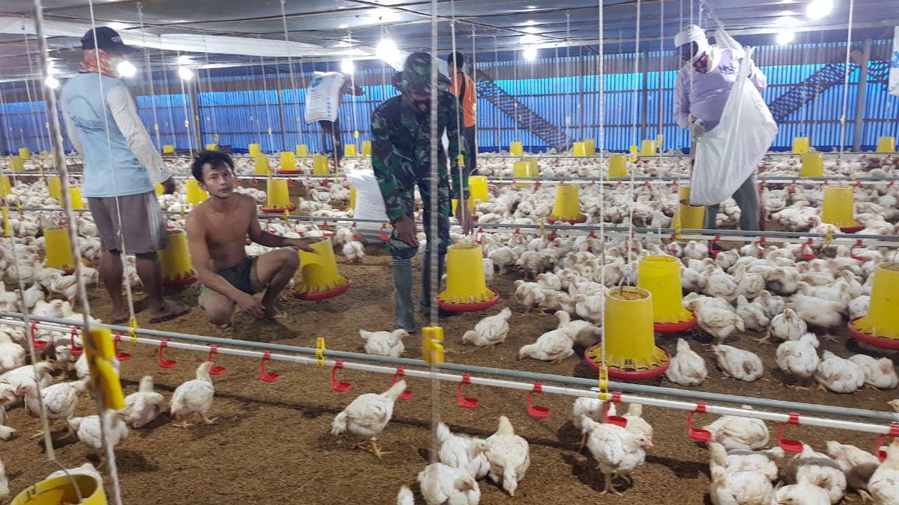 Pati – Anggota satgas TNI Manunggal Membangun Desa (TMMD) Reguler ke 111 Kodim 0718/Pati, Serda Sukarji, melaksanakan kegiatan komunikasi sosial di kandang ayam Hadi (55), di Dusun Kemiri Rt.02/Rw.01, Desa Tamansari, Kecamatan Jaken, Kabupaten Pati, yang kesehariannya menekuni usaha bidang peternakan ayam pedaging, dengan jumlah sekitar 1000 ekor ayam. Didesa Tamansari sendiri ada beberapa warga yang mempunyai usaha peternakan ayam pedaging, Selasa (06/07/2021).