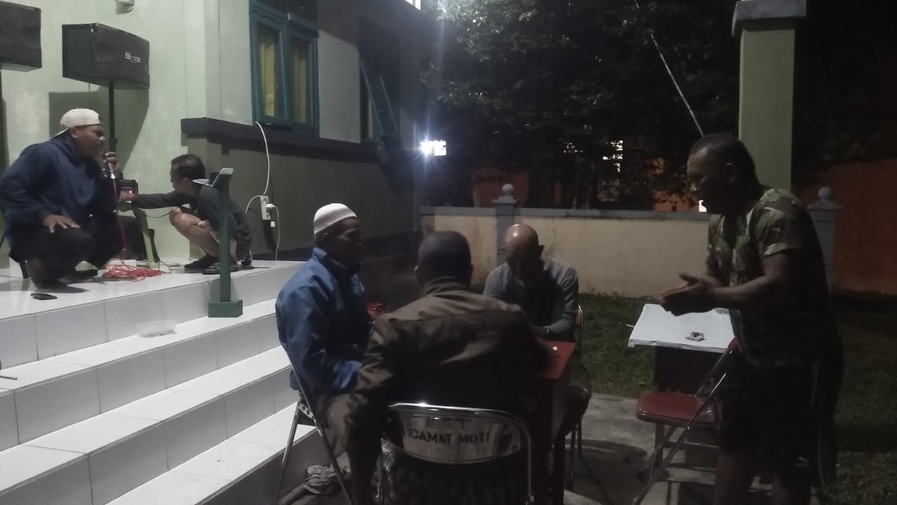 Komsos dilakukan saat malam waktu istirahat kegiatan pembangunan pagar masjid di Takofi Kecamatan Pulau Moti Kota Ternate dengan melaksanakan kegiatan domino dan karaoke kegiatan tersebut juga bertujuan untuk menghilangkan rasa jenuh Serta saling bertukar informasi, sekaligus mengetahui kesulitan dan keluhan yang sedang dialami oleh masyarakat setempat.