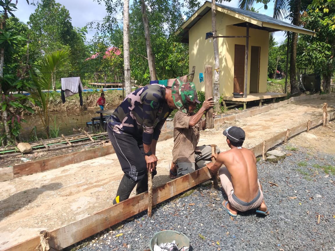 Batas itu rencananya akan menjadi pembatas jalan untuk keperluan pengecoran jalan. “sebelum dicor memang harus dibuatkan pembatas jalan dulu agar pengecoran lurus,” jelas Serda Anwar.