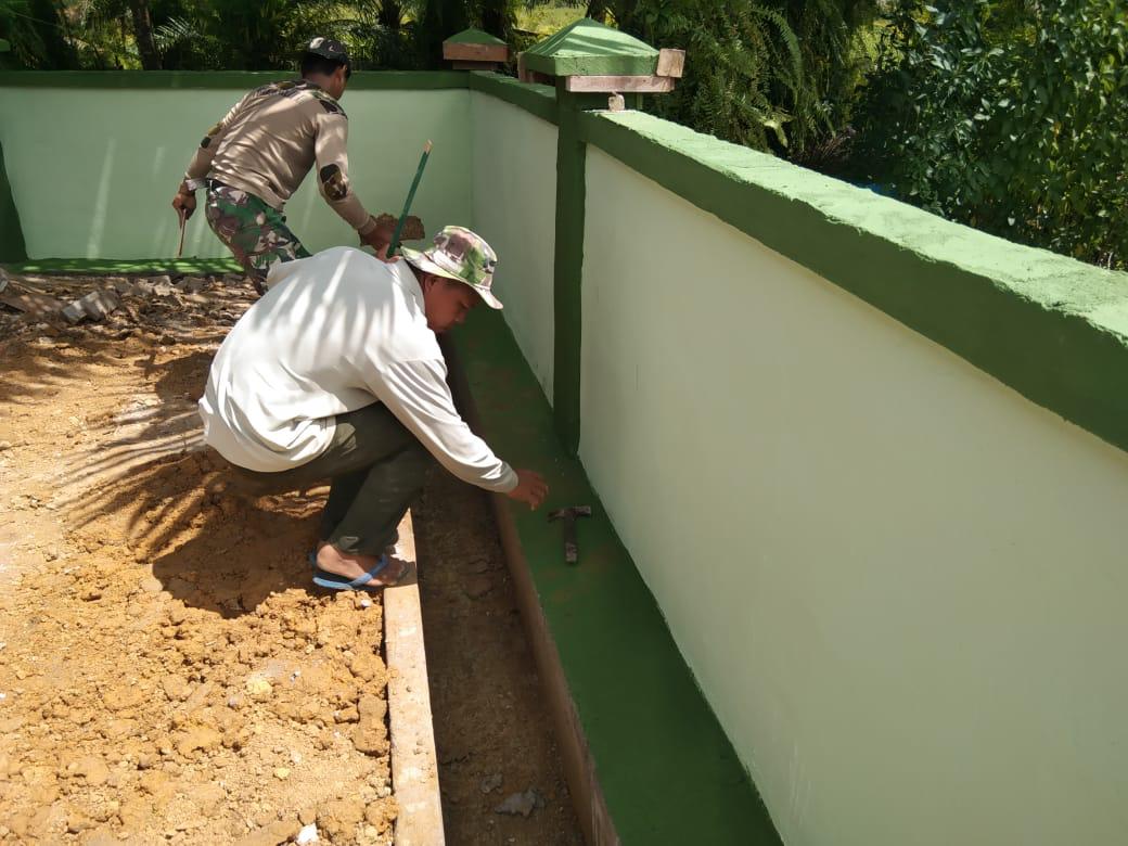 BENGKAYANG – Personil Satgas TMMD Regtas ke-111 Kodim 1202/Singkawang bersama warga membersihkan parit di Sekeliling Pustu yang sudah selesai pengerjaan Pagar di Desa Sentangau Jaya Jalan Trans Segorong Kecamatan Seluas Kab Bengkayang.