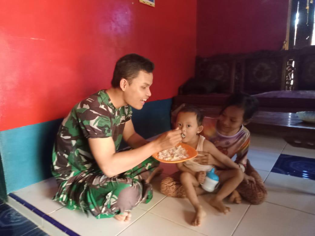 “Kebetulan usai bekerja, saya singgah di rumah salah satu warga, kebetulan warga itu sedang memberi makan anaknya. Kemudian saya singgah dan membantu ibunya,”kata Serda Alpon.