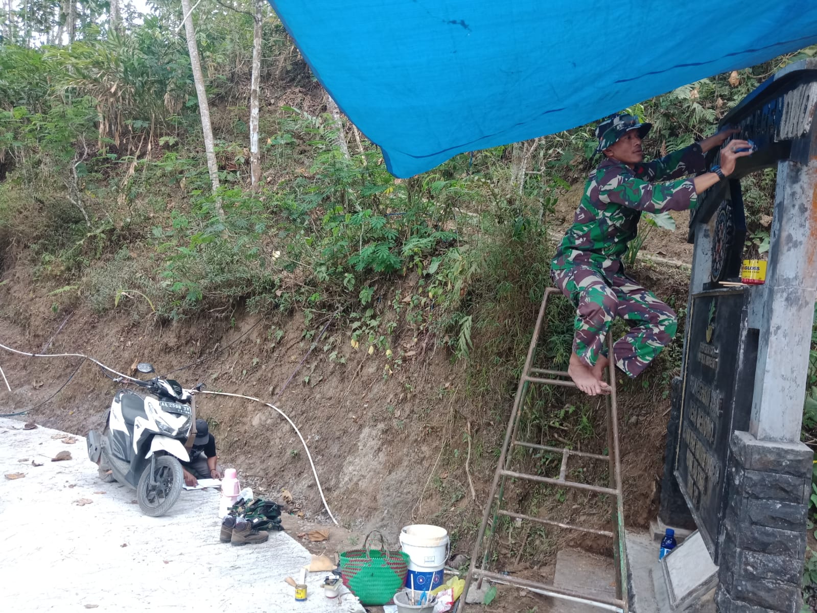 Selain pengecoran jalan sepanjang 2 Km, pada program TMMD ini juga terdapat sasaran fisik lainnya yaitu pembangunan tugu batas desa. Satgas TMMD bersama warga terus kebut pembangunan tugu batas desa Benowo. Mereka bekerja sesuai dengan progres yang sudah di bagi.