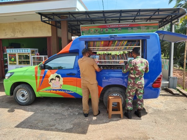Kubu Raya – Sosialisasi perpustakaan keliling yang digelar satgas TMMD bekerja sama dengan Dinas Perpustakaan dan Kearsipan (DPK) Provinsi Kalimantan Barat, di lokasi TMMD ke-111 Kodim 1207/Pontianak yang berada di Desa Kuala Mandor B, Kecamatan Kuala Mandor B, Kabupaten Kubu Raya, Selasa (22/06/2021).