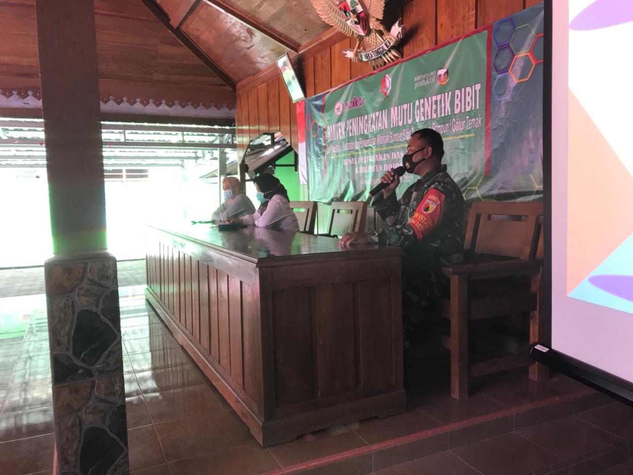 Dalam sambutan giat Bimtek peningkatan mutu genetik bibit, Danton 3 Satgas TMMD, Letda Lek Slamet Nursamsi, mengapresiasi dan mengucapkan banyak terima kasih atas dukungan Dinas perternakan Bojonegoro kepada satgas TMMD ke-110 Kodim 0813/Bojonegoro.
