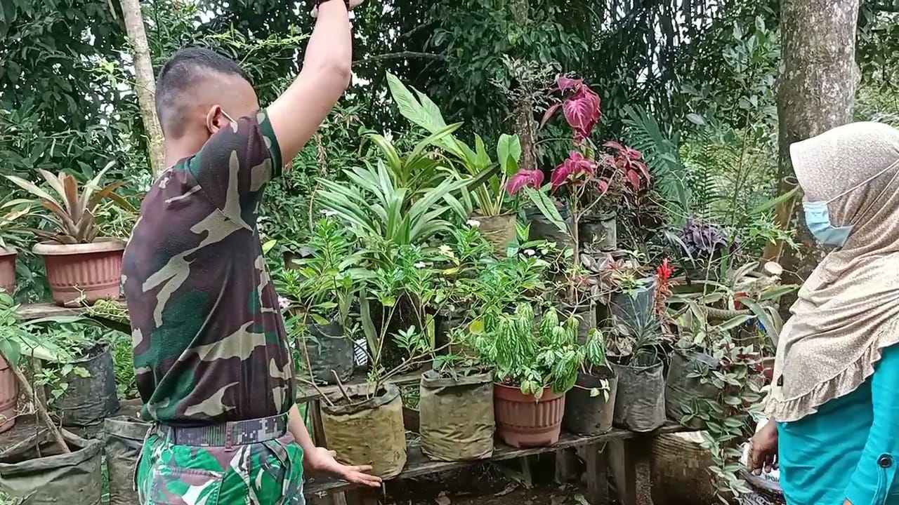 Satgas TMMD ke 111 kodim 0212/TS, belajar kepada Bu Nurmala Tanjung melakukan perawatan bunga Anggrek di Desa Siuhom, Kec Angkola Barat, Kab Tapanuli Selatan