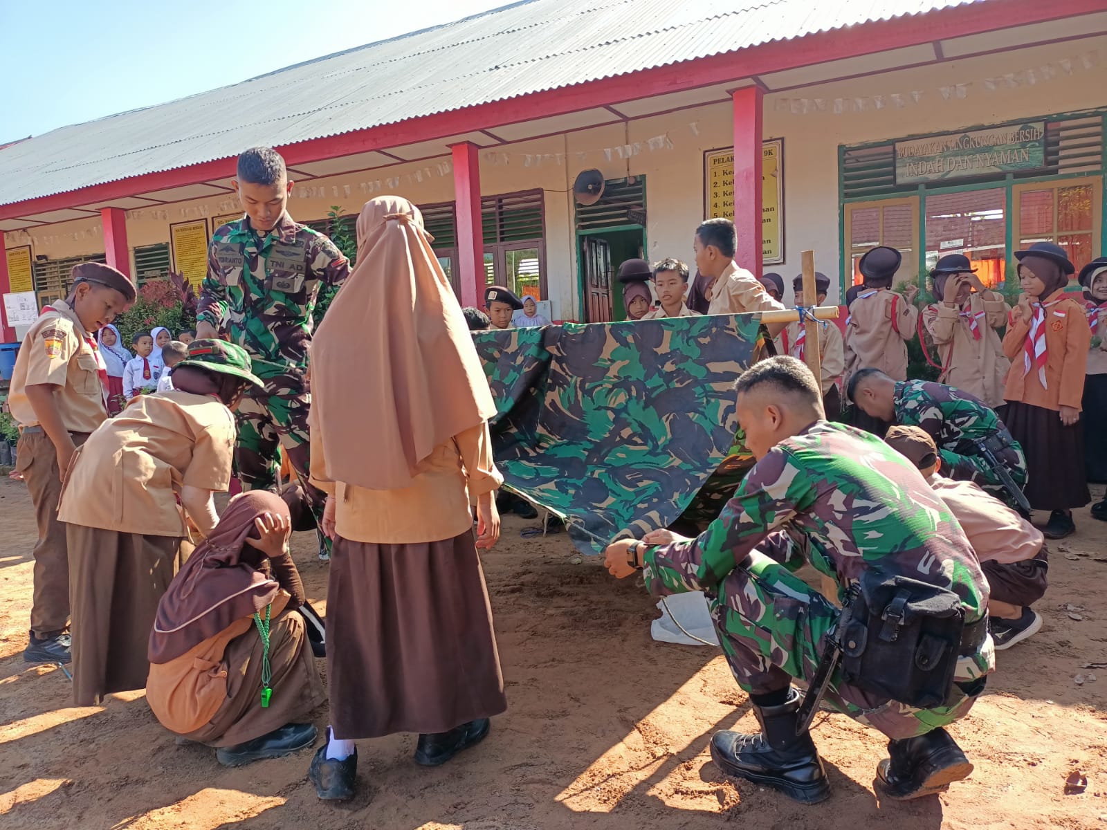 Kliksumatera.com, PALEMBANG- Dalam Rangka Penyiapan Satuan Tugas (Satgas) Pengamanan Daerah Rawan (Pamrahwan) Maluku, Satuan Yonarhanud 12/SBP melaksanakan Kegiatan Pembinaan Kepramukaan dan Wawasan Kebangsaan (Wasbang) di Sekolah Terdekat, Senin (04/04/2023).