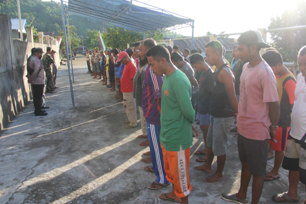 Sebelum lakukan aktifitas, Anggota Satgas Tentara Manunggal Membangun Desa (TMMD) Ke-111 Kodim 1501/Ternate lakukan Apel pagi yang dilaksanakan di Kelurahan Moti kota, Kecamatan Pulau Moti.