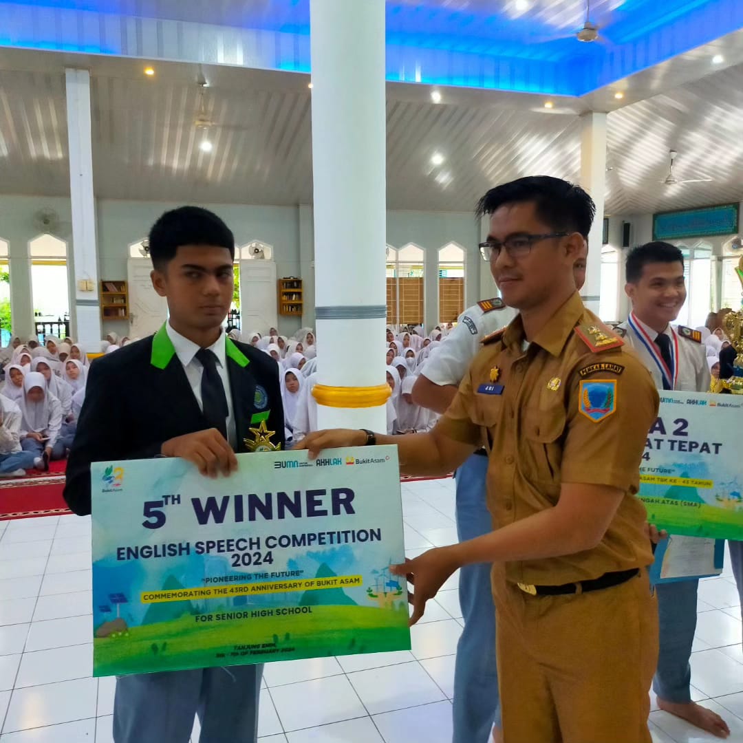 SMA Unggul Negri 4 Lahat selalu update mengikuti perlombaan yang digelar oleh perusahaan batu bara yang tersohor di Sumsel ini. Selepas upacara bendera Kepala SMA Unggul Negeri 4 Lahat Dr Baslini, MPd bersama dengan salah satu alumni SMANPALA angkatan 2006 Arie Effendi, S.IP (Sekretaris Camat Kikim Timur) menyerahkan piala, medali, dan piagam penghargaan kepada siswa-siswi yang memenangkan lomba dalam rangka HUT PT. Bukit Asam tersebut.