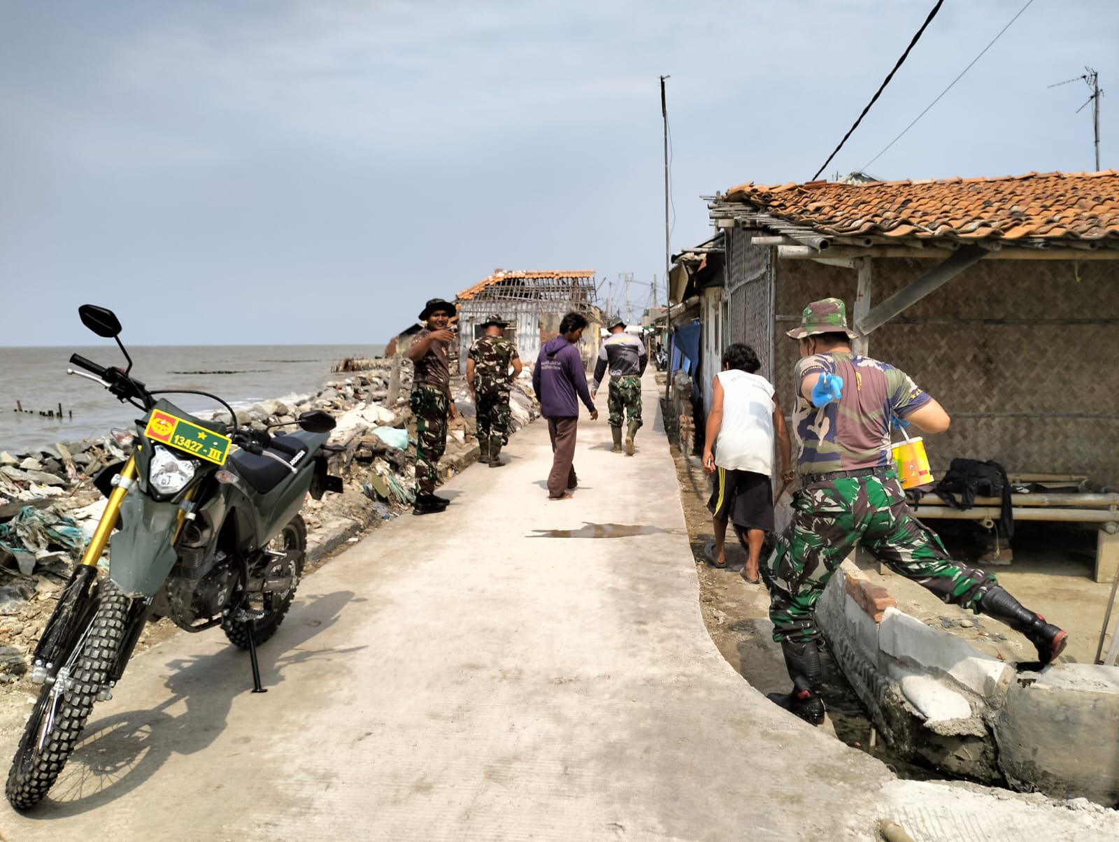 Kapten Joko pun menegaskan bahwa Setiap harinya Personel Koramil 0409/Telagasari bersama Satgas BKO TMMD dan warga masyarakat melaksanakan pemeliharaan bersama, salah satunya dengan menyirami Jalan tersebut dengan air”.