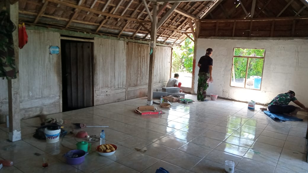“Pekerjaan tinggal sedikit, kita sedang melakukan pengecatan dinding rumah milik Ibu Surati,” terang Serda Agung.