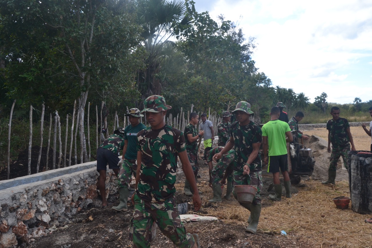 Walaupun berada dibawah terik matahari, namun sejumlah anggota Satgas TMMD dan masyarakat bahu membahu untuk melanjutkan pengecoran jalan setiap hari, dan tidak sedikitpun menyurutkan tekat mereka dalam bekerja.