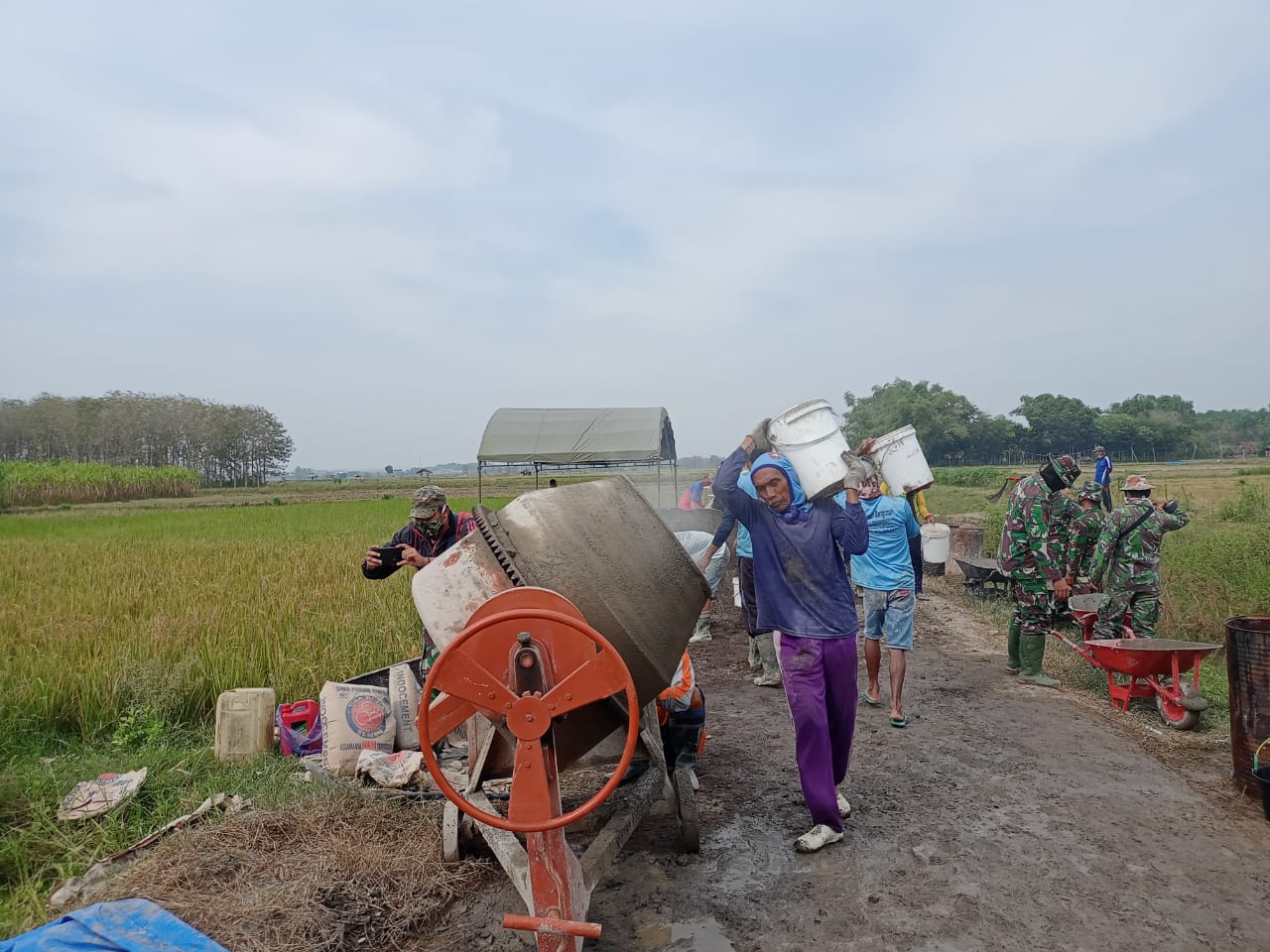 Satgas TMMD 111 Kodim Pati pagi ini bersama masyarakat bahu membahu melanjutkan pekerjaan pengecoran jalan betonisasi yang menjadi sasaran pokok. Ratno (37) warga yang turut membantu dalam pekerjaan pengecoran jalan mengatakan jika dirinya hari ini giliranya bekerja dan ia merasa sangat senang bisa bergabung bersama TNI bekerja bergotong-royong.