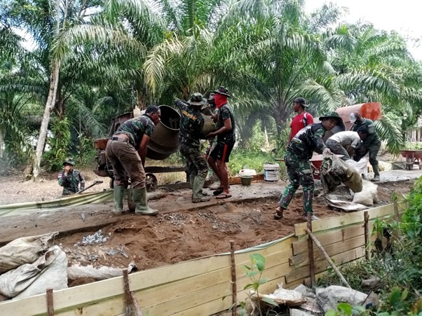 Lokasi TMMD ke-111 yang bertempat di Dusun Maju jaya Desa Kuala Mandor B, Kecamatan Kuala Mandor B, Kabupaten Kubu Raya ini selalu bersemangat.