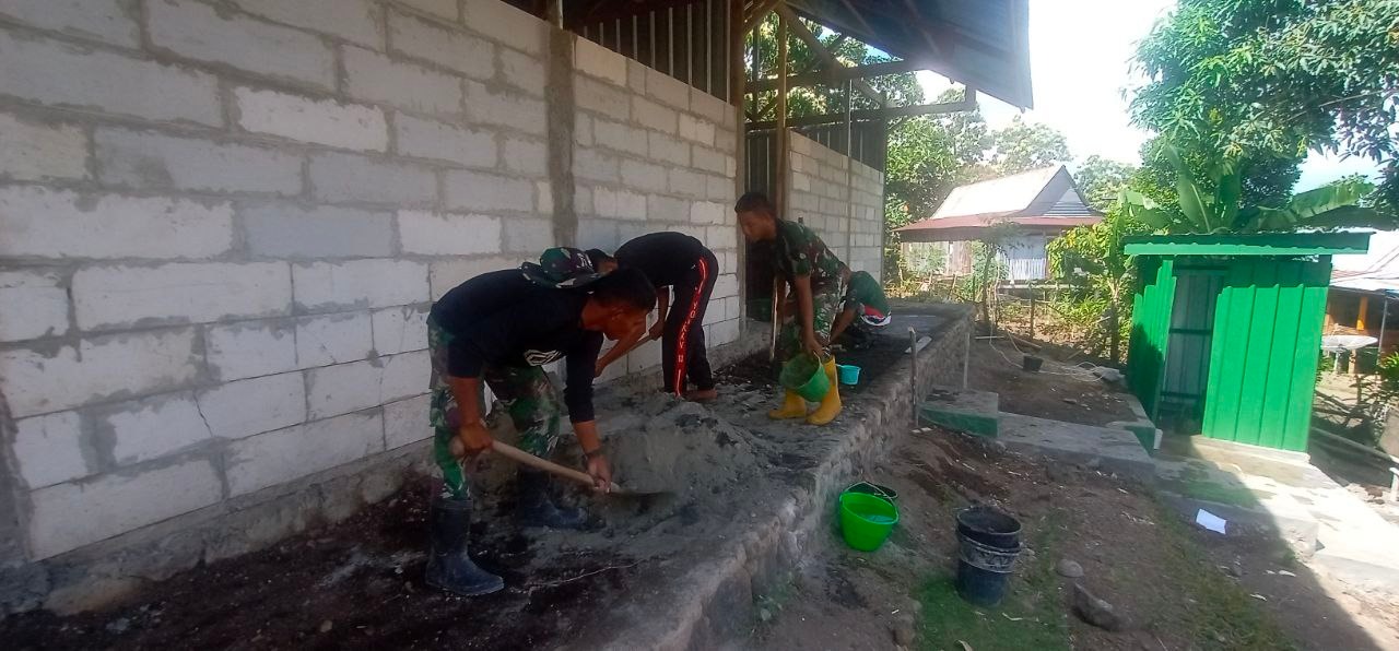 Ditambahkannya “Dan yang membuat kami lebih semangat serta pekerjaan terasa lebih ringan yaitu turut hadirnya anak-anak membantu kami, walaupun kadang hanya membantu mengambilkan alat-alat tukang, seperti sendok semen,timba air dan lain-lainnya tapi melihat keceriannya kamipun ikut gembira,” ucap Sertu Jufri.
