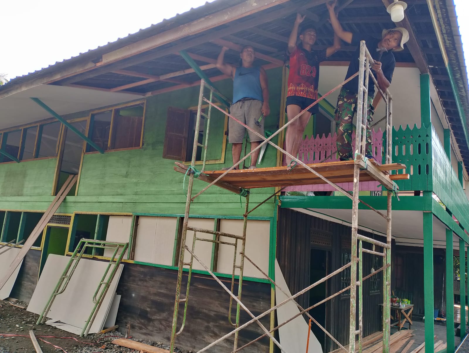 “Memasuki hari ke-18 TMMD, kami fokus pada pembenahan plafon teras. Kami pastikan pengerjaan dilakukan dengan rapi dan kuat agar bangunan TPA Al Ikhlas semakin nyaman dan aman digunakan,” ujarnya.