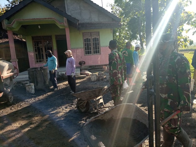 Tampak terlihat anggota Satgas TMMD dan warga terus bekerja menyiapakan Adonan cor untuk pengecaoran jalan yang sudah memsuki titik akhir pengecoran. Dikatakan oleh Harjo warga Desa Tamansari, bahwa pengecoran jalan sudah hampir selesai.