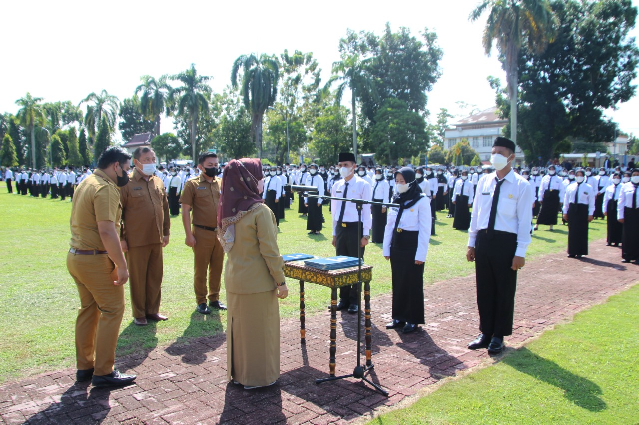 Kliksumatera.com, KAYUAGUNG- Ratusan Guru, di Kabupaten Ogan Komering Ilir, Sumsel terlihat sumringah setelah resmi menyandang gelar ASN Pegawai Pemerintah dengan Perjanjian Kerja (PPPK) Kabupaten Ogan Komering Ilir Formasi Tahun 2021. Mereka dikukuhkan Bupati Ogan Komering Ilir, H. Iskandar, SE melalui Asisten Bidang Umum dan Kepegawaian, Hj. Nursula SSos di Halaman Kantor Bupati OKI, Senin (27/6).