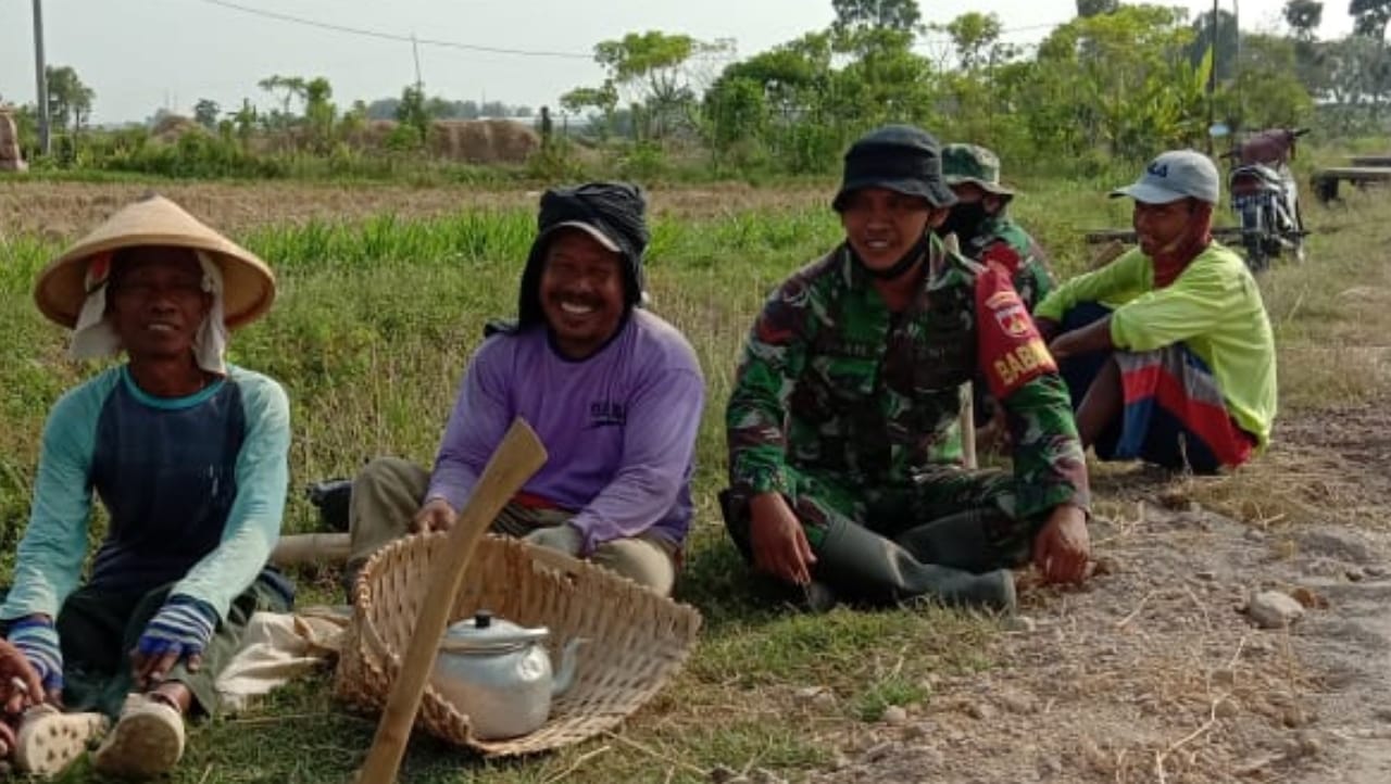 Disela pekerjaan di sasaran pokok TMMD kodim Pati di desa Tamansari, para anggota satgas TMMD kodim Pati bersama masyarakat melaksanakan istirahat siang sambil ngobrol bareng. Rabu,(09/06/2021).