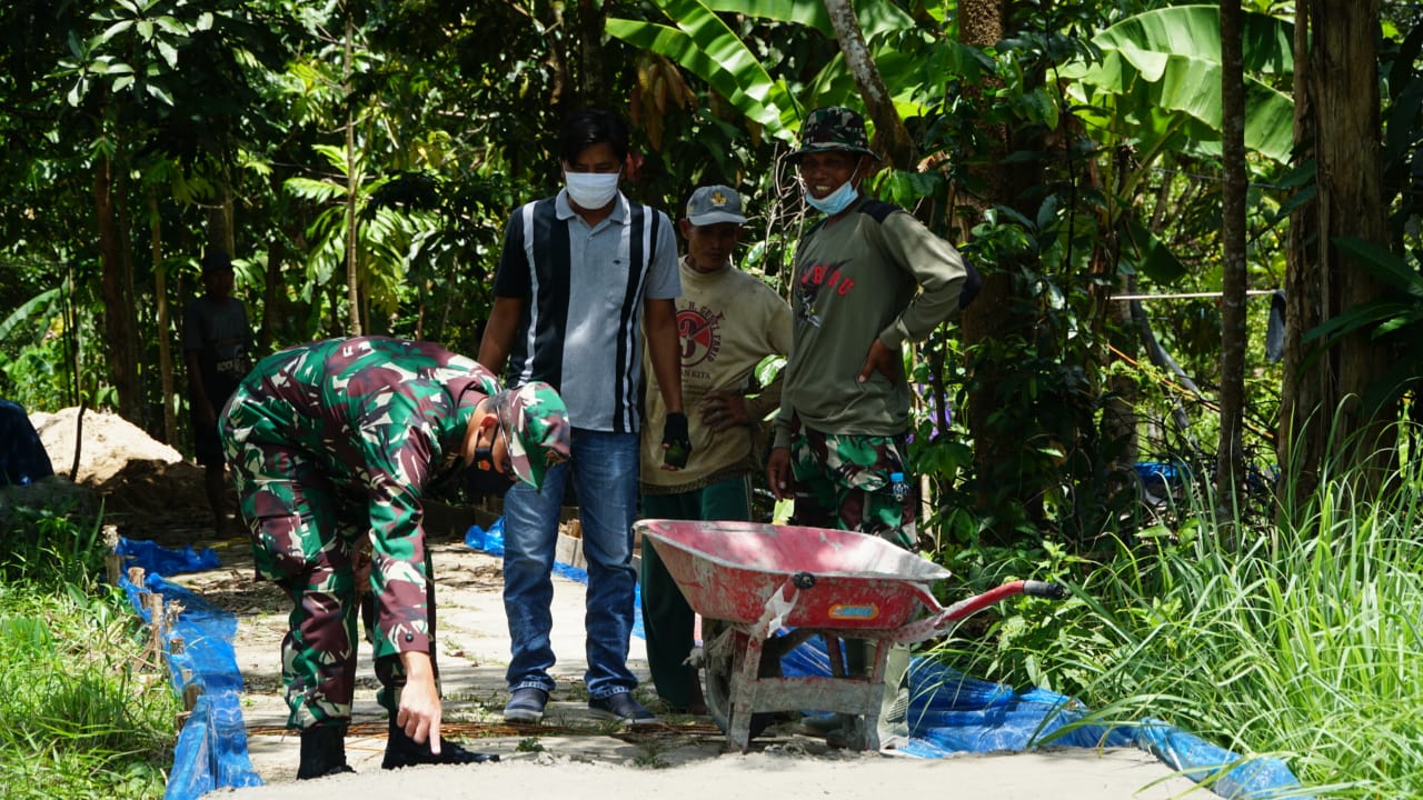 Seperti halnya saat Dansatgas TMMD, Letkol Inf. Ari Bayu Saputro melakukan pengecekan di lokasi pengerjaan, Kamis (18/3/21) ketika melihat bangunan ada yang kurang benar dengan segera memerintahkan anggota satgas untuk memperbaikinya.