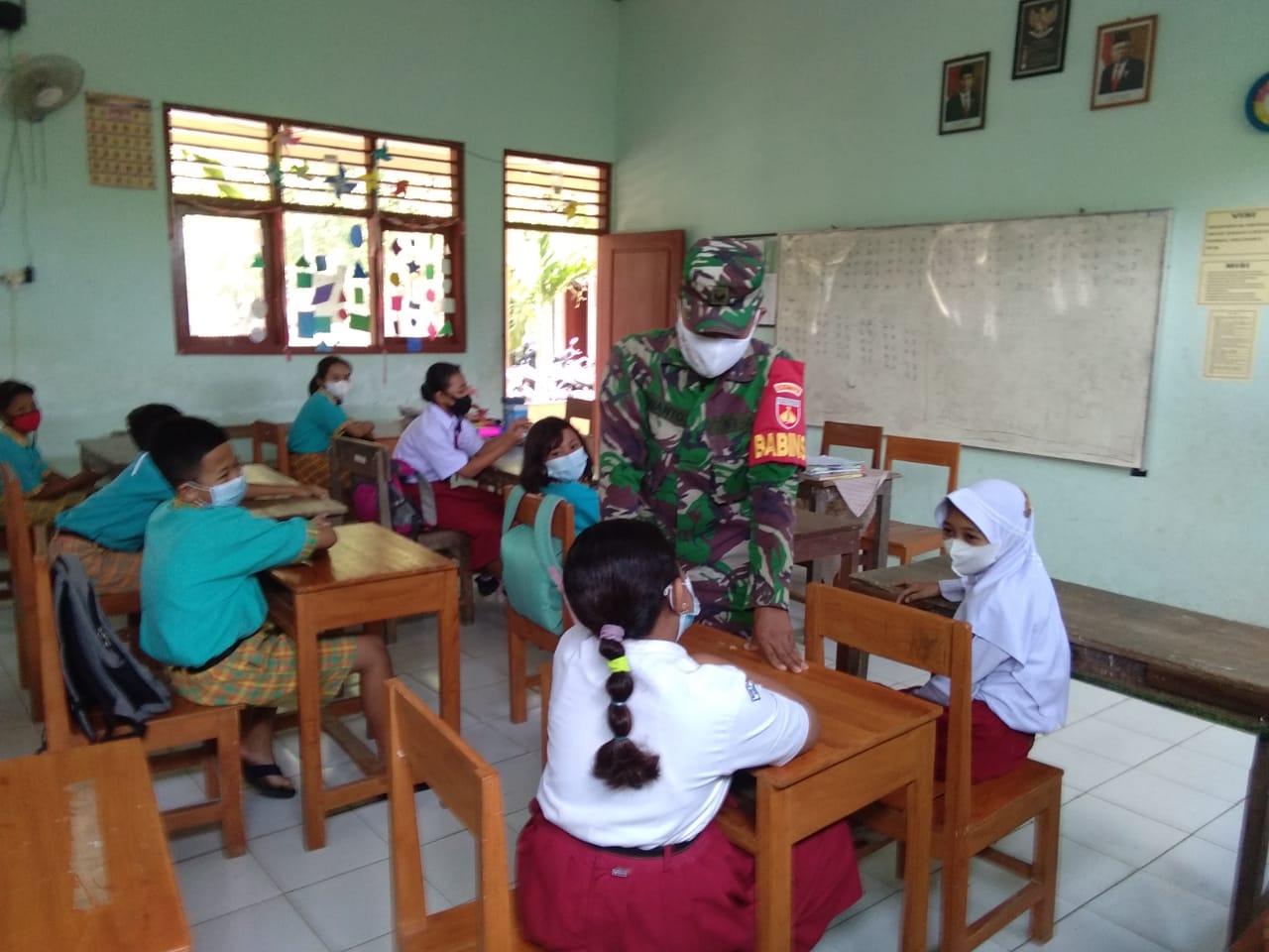 Hal inilah yang kadang disela istirahat para anggota satgas mencari kesibukan menghibur diri untuk meringankan dan menghilangkan penat. Seperti yang dialami oleh Serda supriyanto, melihat anak-anak sekolah dasar desa Tamansari yang sedang berkumpul di sekolahan guna mempersiapkan mendaftarkan diri di salah satu SLTP di kecamatan Jaken, Serda Supriyanto menghampiri mereka dengan tujuan memberikan motivasi.Kamis,(10/06/2021).
