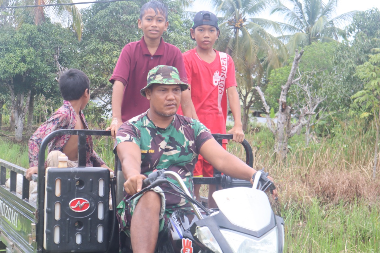 Kapuas. Di sela-sela tugas menjadi anggota Satgas TMMD ke-110, Kodim 1011/KLK, di Desa Saka Lagun, Kecamatan Pulau Petak, Kabupaten Kapuas, Serka Djamal mewujudkan kemanunggalan dengan masyarakat Dengan bermain bersama anak-anak Desa, Sabtu Sore (13/3/2021).