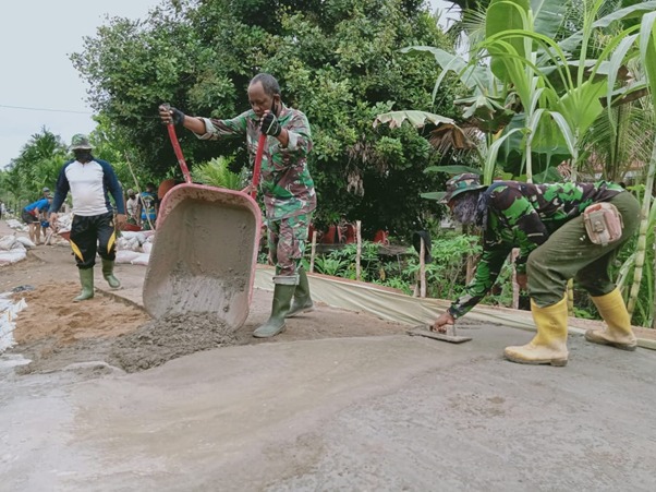 Kubu Raya – Serka Matares dari Koramil 1207-03/Pontianak Barat mengikuti kegiatan TMMD ke-111 di Dusun Maju Jaya, Desa Kuala Mandor B, Kecamatan Kuala Mandor B, Kabupaten Kubu Raya, Jumat (18/06/2021).