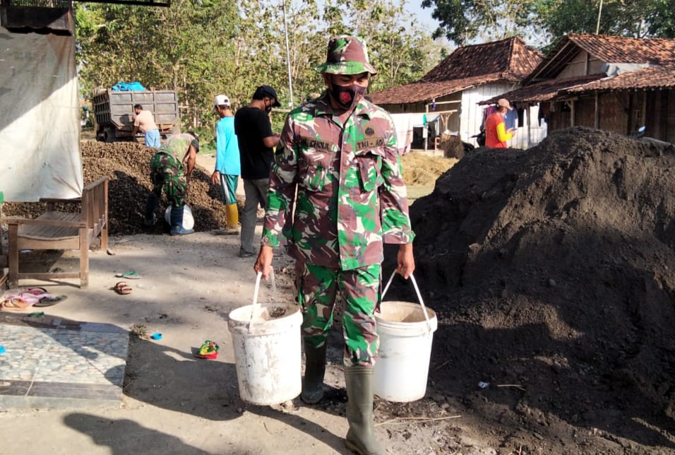 Dialah Sertu M. Cholil yang sehari-hari berdinas di Koramil 21/Trangkil Kodim 0718/Pati. Kenapa bisa dibilang berbeda dengan TNI anggota Satgas yang lain, pasalnya dirinya tenang, jarang sekali bercicara, tetapi kerjanya luar biasa. Ember besar berisi pasir yang biasanya dibawa 2 orang, dirinya malah membawa 2 ember sekaligus ditenteng dengan tangan kanan dan kirinya, Jum’at (25/6/2021).