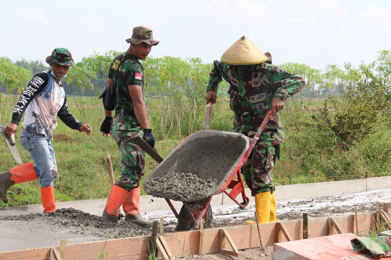 Pati – Seminggu sudah pelaksanaan kegiatan TMMD Reguler ke-111 Kodim Pati di Desa Tamansari, Kecamatan Jaken, Kabupaten Pati, kegitan terus digenjot guna percepatan pengerjaan sasaran fisik TMMD agar selesai tetap waktu.
