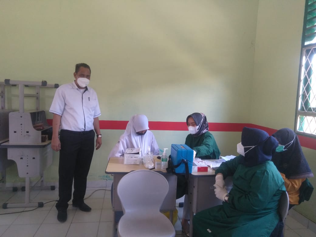 Untuk guru di sini, sambung Amri, dari total 50 guru, sebanyak 46 guru sudah divaksin. Sisanya 4 guru belum divaksin karena ada yang hamil dan penyakit bawaan. Sementara itu, salah satu siswa yang ikut vaksin, Emil mengatakan, dia ikut vaksin atas izin orang tua. “Saya ikut vaksin untuk mencegah covid. Alhamdulikah selama ini belum pernah terpapar covid, semoga dengan sudah divaksin akan semakin meningkatkan imunitas,” tutupnya.