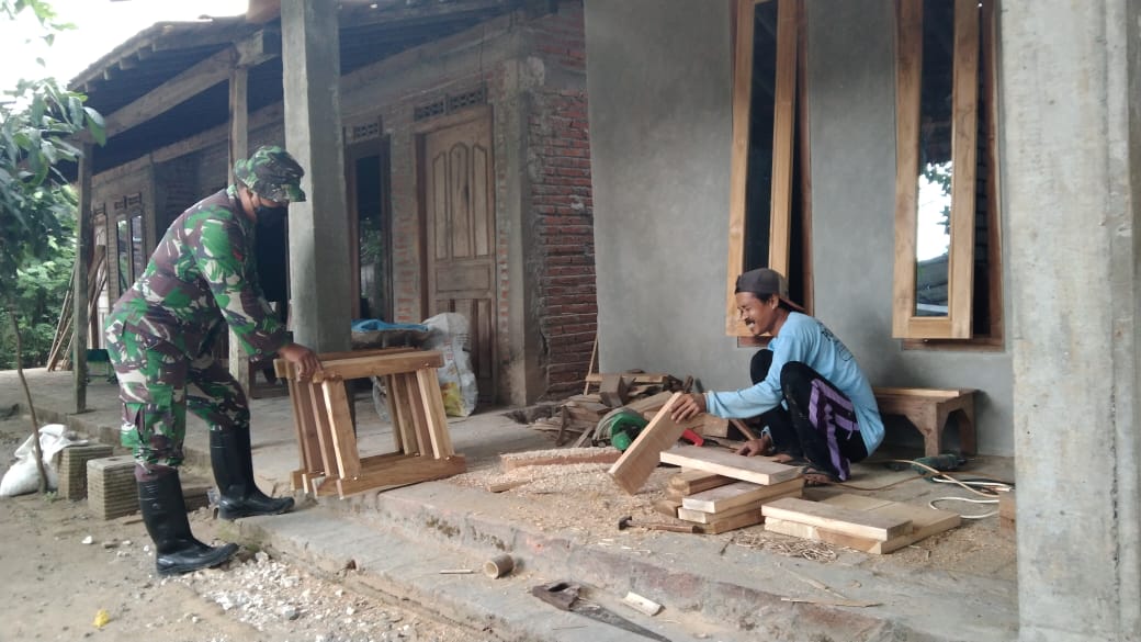 PATI – Perbaikan Rumah Tidak Layak Huni (RTLH) kepada para penerima bantuan rehab rumah yang menjadi program sasaran TMMD 111 Kodim 0718/Pati TA 2021 terus berlangsung, salah satunya milik Sukandar (49) yang saat ini sudah pada tahap penyiapan pemasangan jendela. Minggu (27/06/21).