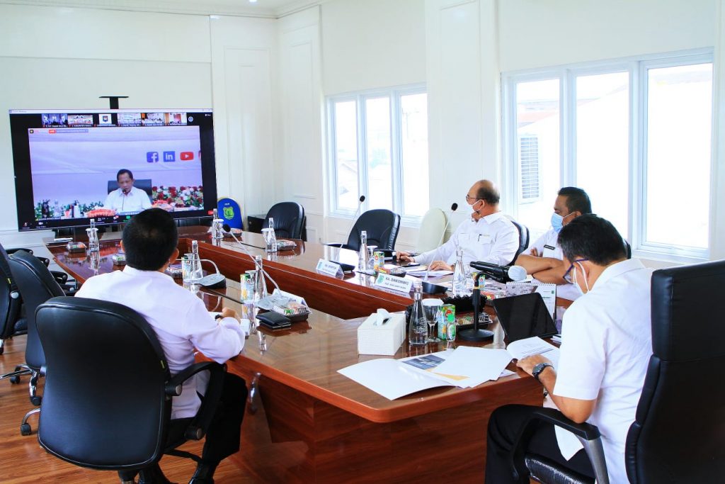 Dalam kesempatan mengikuti Rapat Koordinasi Pusat Daerah Tentang Perkembangan Program Pertashop Kepada Gubernur, Bupati / Walikota Seluruh Indonesia Secara Virtual, Plt Bupati Beni Hernedi turut didampingi Kepala DPMPTSP Muba, Erdian Syahri SSos MSi, Kepala DPMD Richard Cahyadi AP MSi, dan Kepala Dinkominfo Muba Herryandi Sinulingga AP.