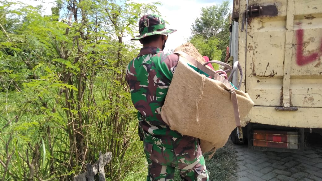 Karena melihat ada pengguna jalan yang kesulitan untuk bisa melintas kemudian Anggota TNI tersebut langsung bergegas untuk membantu. “Setelah dibawakan keranjangnya akhirnya bisa lewat,” ujarnya.