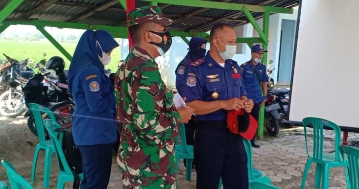 Bojonegoro – Serda Chairul Anwar salah satu personel Satgas TMMD 110 melakukan koordinasi dan juga konsultasi dengan kepala bidang penanggulangan kebakaran Dinas Pemadam Kebakaran Damkar Pemkab Bojonegoro saat memberikan pelatihan dasar penanggulangan bencana kebakaran.