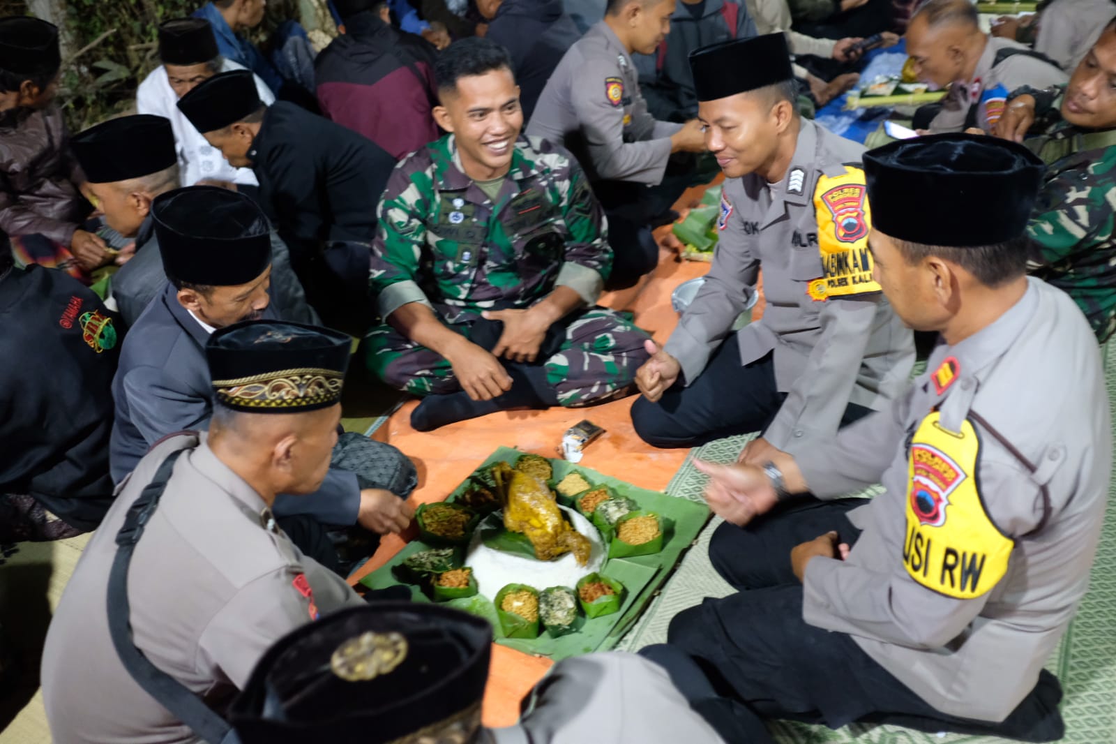 Salah satu bentuk kedekatan TNI dengan masyrakat serta Soliditas TNI dan POLRI nampak terlihat dalam acara tasyakuran tersebut,mereka bersama sama berbaur makan bersama nasi tumpeng seadanya yang telah di sediakan oleh warga Desa Benowo.