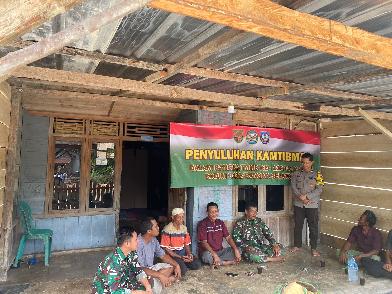 BANGKA SELATAN – Bintara Pembina Desa (Babinsa) bersama Bhabinkamtibmas melaksanakan kegiatan komunikasi sosial (Komsos) di lokasi TMMD ke-119, Kamis (29/02/2024).