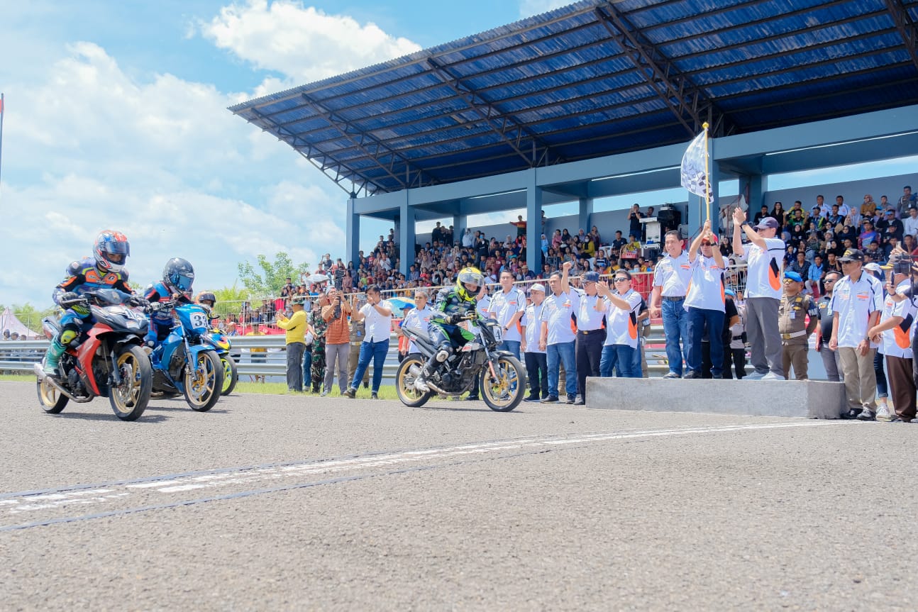 “Dengan ini saya mengajak mari kita menjadi tuan rumah yang baik, penonton yang tertib. Kalau kegiatan ini bisa berlangsung dengan aman tertib dan lancar, didukung oleh semua komponen masyarakat. Bisa jadi kegiatan seperti ini akan terus diadakan, bahkan skala lebih besar, moto Prix seri I akan kita perjuangkan untuk di laksanakan di Sirkuit Skyland,”katanya.