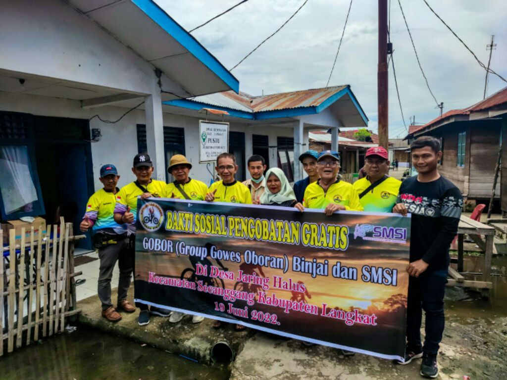 Kliksumatera.com, LANGKAT- Keluarga Besar Serikat Media Siber Indonesia (SMSI) bersama Grub Gowes Oboran (Gobor) Binjai gelar bakti sosial pengobatan gratis di Desa Jaring Halus, Kecamatan Secanggang, Kabupaten Langkat, Provinsi Sumatra Utara, baru-baru ini.