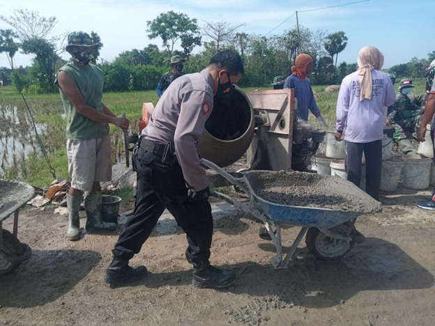 PATI – Dua institusi pertahanan dan keamanan TNI Polri menunjukan sinergitasnya dalam program TNI Manunggal Membangun Desa (TMMD) ke-111 tahun 2021 wilayah Kodim 0718/Pati.