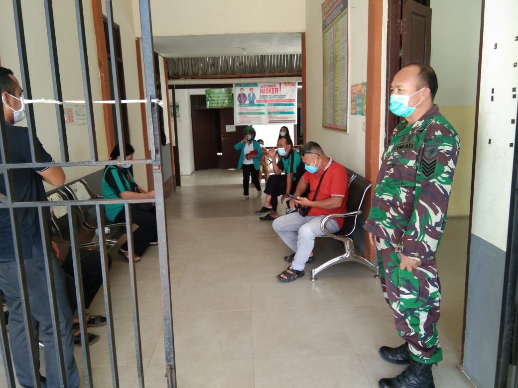 Landak – Babinsa Koramil Menjalin, Serma Agus Triyono memberikan sosialisasi dan edukasi tentang vaksinasi Covid-19 kepada petugas pelayanan publik tenaga pengajar di Puskesmas Menjalin, Kecamatan Menjalin, Kabupaten Landak, Rabu (9/9/2021).