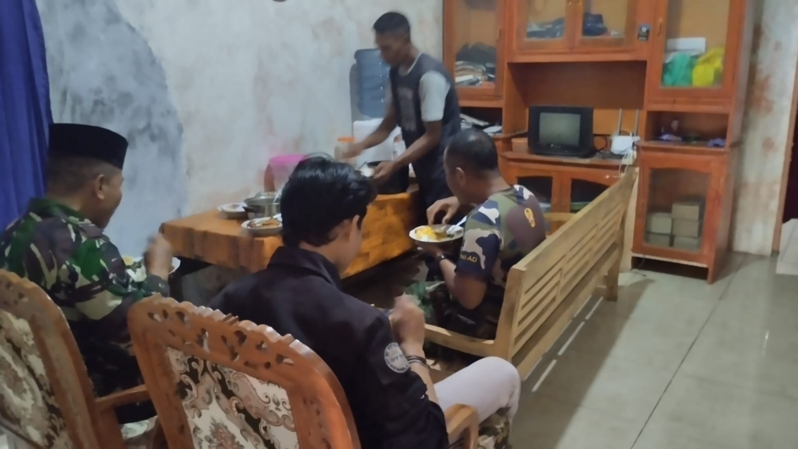 Dalam suasana yang penuh keakraban anggota Satgas TMMD Ke-122 terlihat berbaur di ruang makan sambil menyantap hidangan yang sudah disiapkan oleh tuan rumah bapak Darto. Mereka mereka becanda dan saling bertukar cerita, menciptakan ikatan yang kuat di antara mereka. Momen ini menjadi bukti nyata dari ikatan yang erat antara TNI dan rakyat dalam Upaya bersama membangun Desa.