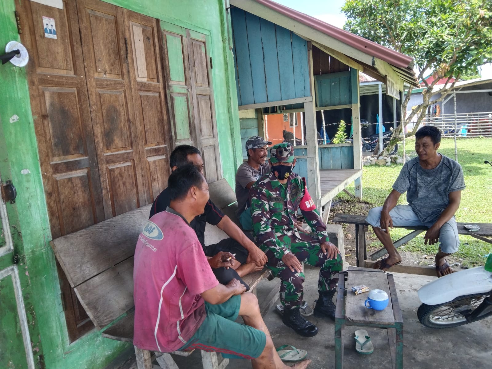 Serka Apendi Sertu Mustafa anggota Koramil 04/KS, melaksanakan komsos dengan Bpk.Sukardi Desa Tanjung Bunga kec.Tetap Kab. Kaur. tentang diadakannya TMMD ke 112 Kodim 0408/BS .