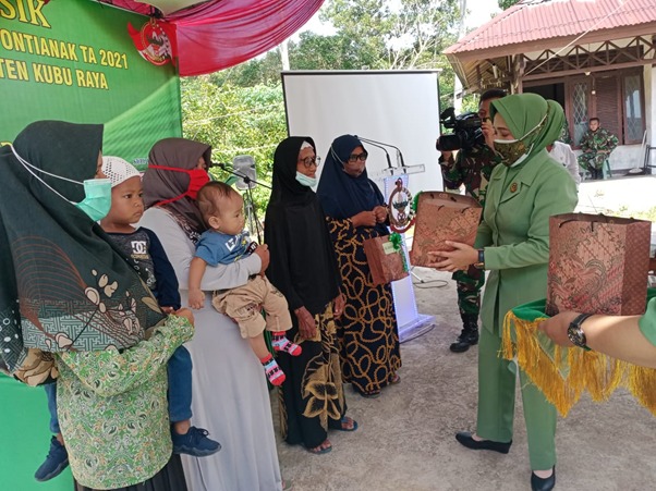 Kubu Raya – Satgas TMMD ke-111 Kodim 1207/Pontianak tidak hanya menyelesaikan pengerjaan sasaran fisik saja. Namun disela kegiatan fisik, anggota satgas juga menggelar kegiatan non fisik salah satunya dengan melibatkan anggota Persit Kartika Candra Kirana Cabang LI Kodim 1207/Pontianak, Rabu (07/07/2021).