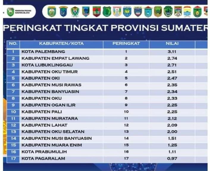 Kliksumatera.com, PAGARALAM- Baru-baru ini Pemerintah Provinsi Sumatra Selatan (Sumsel) mengumumkan peringkat hasil penyampaian Laporan Penyelenggaraan Pemerintah Daerah (LPPD) tahun 2020. Namun sayang, ada SKPD yang dalam menyampaikan laporan tersebut tidak melengkapi data pendukung sehingga isi laporan tersebut tidak sesuai dengan IKK LPPD, yang dibuat tahun 2021, dimana Kota Palembang mendapat skor tertinggi, sementara Kota Pagaralam yang terendah.