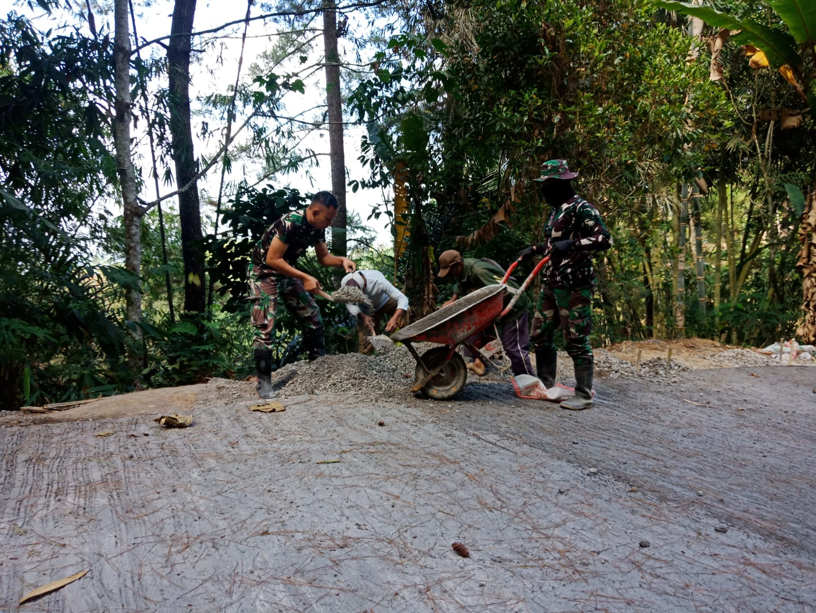 Purworejo – Demi mensukseskan TNI Manunggal Membangun Desa (TMMD) Reg ke 118 Anggota Satgas TMMD Kodim 0708/ Purworejo tetap melanjutkan pekerjaan pengecoran jalan Desa Benowo Kecamatan Bener Kabupaten Purworejo, Minggu (24/09)