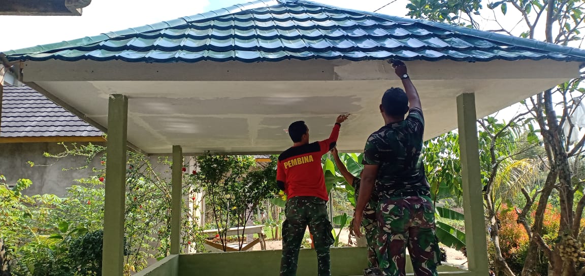 Dikatakan DANSSK kapten Infanteri Winarto pengerjaan pos kamling alami progres yang begitu signifikan, terlihat pada hari ini juga mulai plamir plafond.
