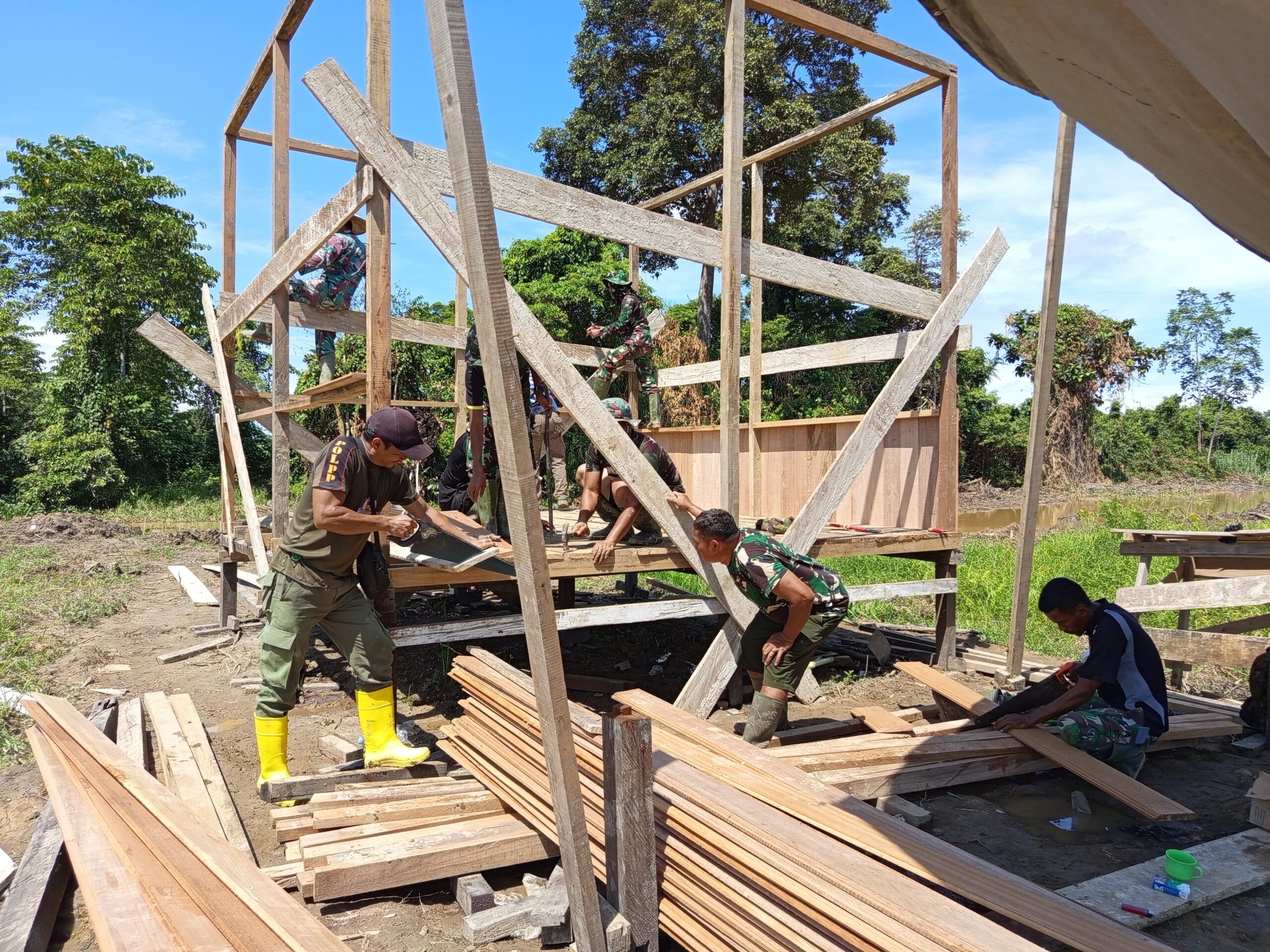 MALINAU – Demi mensukseskan TNI Manunggal Membangun Desa (TMMD) Ke-121 Wilayah Perbatasan Kodim 0910/Malinau Tahun 2024. Anggota Satgas TMMD bersama warga masyarakat tetap melakukan pekerjaan meski hari libur.