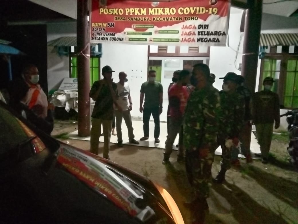 Patroli yang dilakukan oleh anggota Koramil dan Polsek Toho guna menyampaikan himbauan prokes 5m dan pendisiplinan protokol kesehatan serta mengajak warga untuk lebih meningkatkan kewaspadaan dengan selalu menjaga kesehatan dan mematuhi himbauan dari pemerintah.