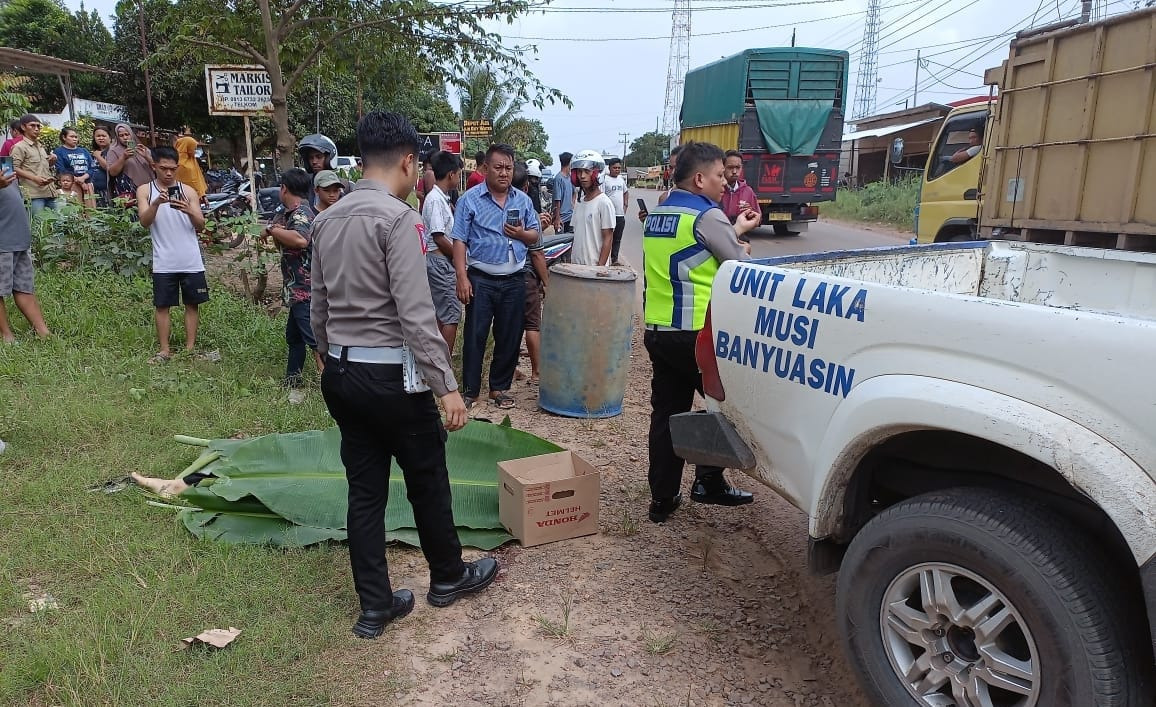 Kliksumatera.com, SEKAYU- Akibat pengendara sepeda motor tersenggol R6 Truck Box Hino No Pol B 9624 NXR, yang dikemudikan FERDIYANSA Bin HENDRAWAN (32) di Jalan Lintas Timur (Jalintim) Palembang – Jambi Km 120 Desa Srigunung Kecamatan Sungai Lilin Kabupaten Mudi Banyuasin (Muba) Provinsi Sumatra Selatan, tepatnya di depan SPBU yang baru, Senin 20/3/2023 sekira pukul 14.00 Wib, si pengendara motor tewas di TKP.