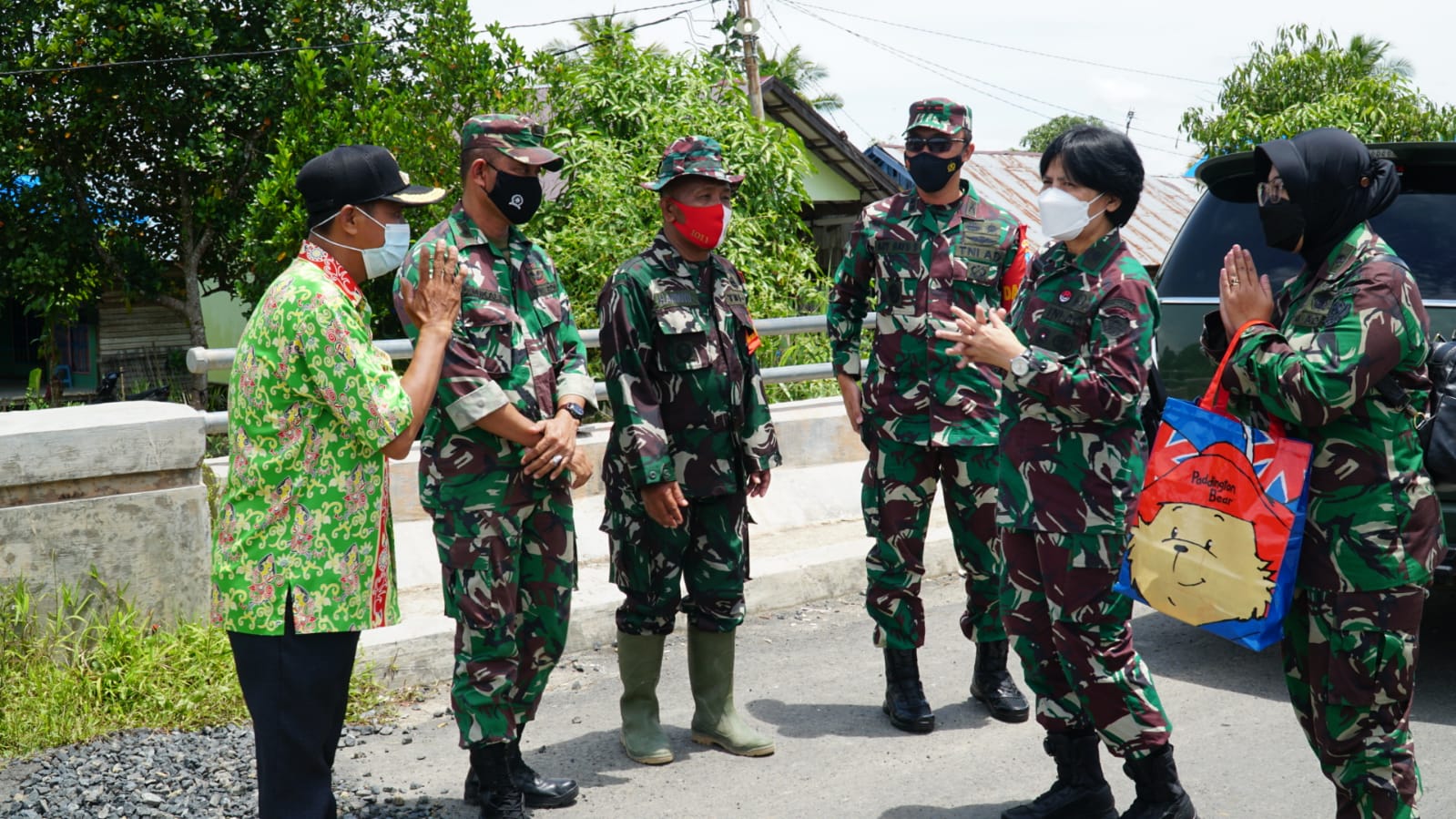 Kapuas,- Tim Dispenad Letkol Caj (K) Effy Sutana, S.M dan Mayor Caj (K) Basarah Septiana, M. S.S di dampingi Dandim 1011/Kuala Kapuas Letkol Inf Ary Bayu Saputro, S.Sos melakukan pengecekan lokasi pengerjaan TMMD di Desa Saka Lagun, Kecamatan Pulau Petak, Kabupaten Kapuas, setelah melakukan pertemuan dengan Bupati Kapuas, Kamis (18/3/21).